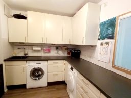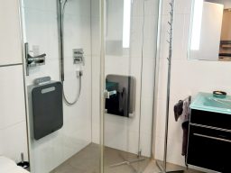 Hochwertige Ausstattung mit Einbauküche, moderner bodentiefer Dusche mit Dampfeinrichtung und stilvollem Vinylboden.